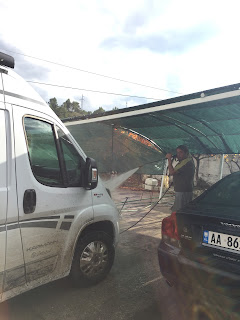 Nachdem wir heute Mittag wieder einigermaßen in der Zivilisation angekommen sind und endlich wieder Teerstraße unter uns hatten, sind uns mehrere Felsen vom Herzen gefallen. Wir haben dann erstmal unseren Carfield wieder aufgetankt und ordentlich gereinigt!