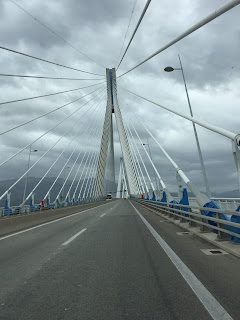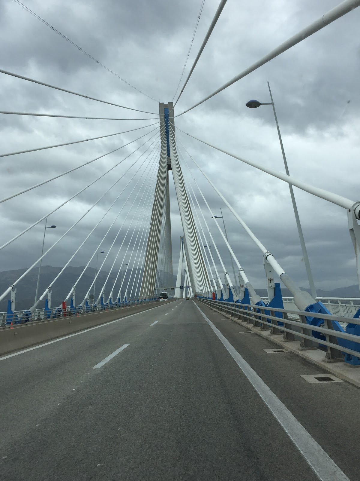 Wir sind heute auf der sehr neu ausgebauten Autobahn A5 Richtung Patras/Athen gefahren, eine seeeehr entspannte Fahrt also. 🙂 Um von Antirrio nach Patras zu kommen, gibt es eine beeindruckend  aussehende Brücke direkt übers Meer, wirklich toll!!!