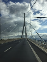 Nach unserer Sightseeingtour sind wir über die Brücke der Normandie gefahren, welche mit ihren 856 m die größte Spannweite Europas inne hat. Sie hat eine Gesamtlänge von 2141,25 m und eine Höhe von 203 m. Die Überfahrt kostete uns zwar ein paar Euronen, aber das hat sich definitiv rentiert!!!