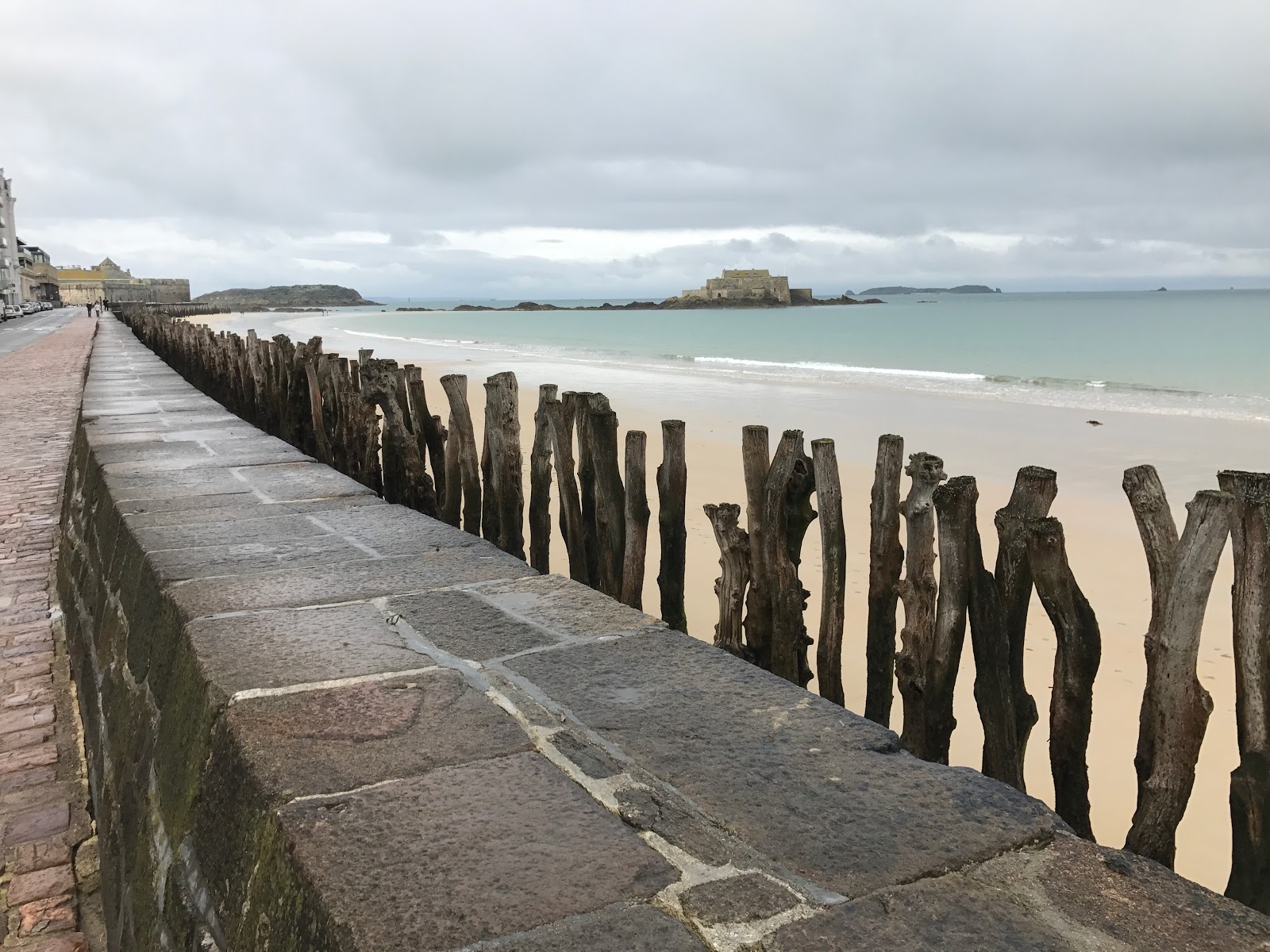 Nach einer Nacht direkt an der Strandpromenade von Saint-Malo empfing uns zunächst etwas Nieselregen. Nichtsdestotrotz haben wir das wirklich tolle Flair der touristischen Stadt eingefangen. Sowohl der Strand mit einer der größten Gezeiten-Unterschiede (Tiedenhub bis zu 12 Meter Differenz) Europas. Das haben wir auch deutlich spüren können; der Strand war mal da und dann im nächsten Moment wieder weg. 😉