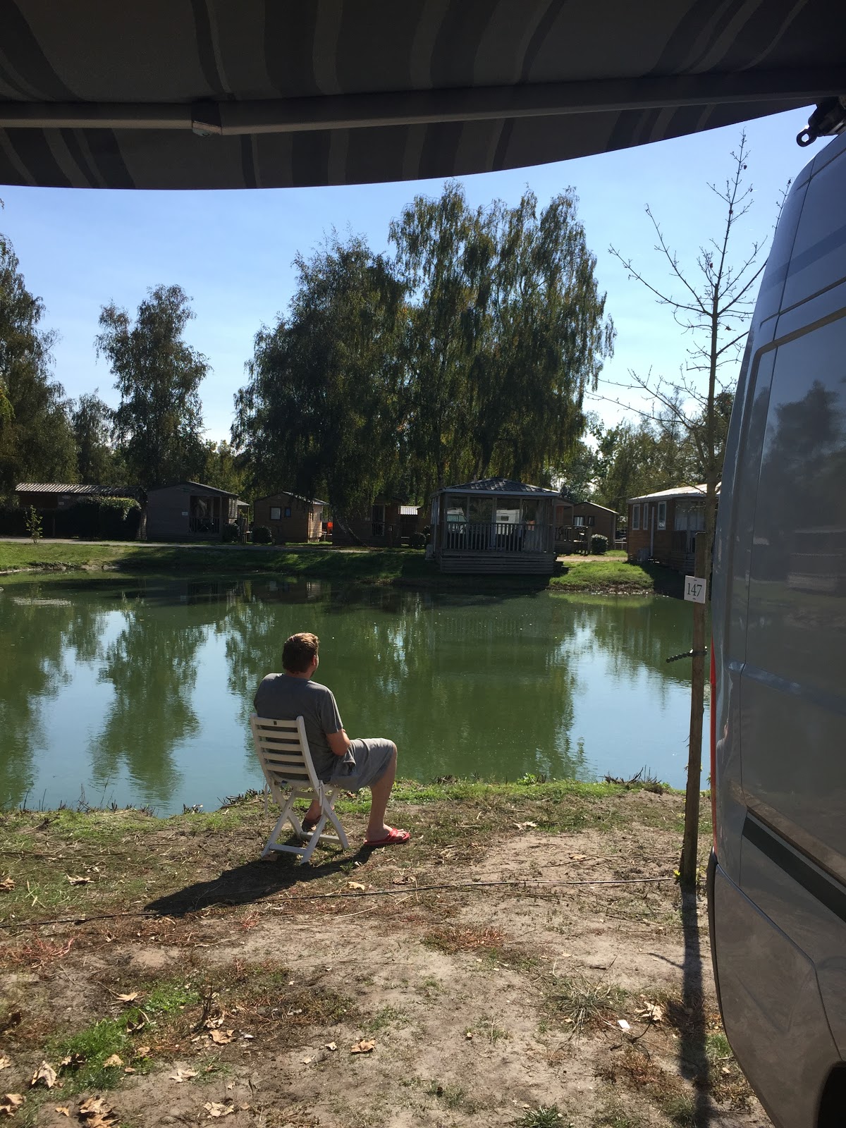 Am Mittag sind wir dann (übrigens gibt es unendlich viele Kreisverkehre hier in Frankreich; das musste jetzt mal raus :D) Richtung Bordeaux aufgebrochen – dem schönen Wetter entgegen! Bei angenehmen 21 Grad und Sonne sind wir auf dem bisher tollsten Campingplatz kurz vor dem Zentrum von Bordeaux – in Bordeaux-Lac – angekommen. Wie der Name schon sagt ist der Stellplatz direkt an kleinen Seen gelegen. Und unser Carfield steht auch genau vorm Gewässer. Ein toller An- und Ausblick!!! 🙂