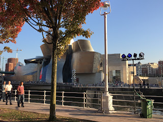Danach haben wir unser eigentliches Ziel Bilbao über die Pyrenäen erreicht. Bilbao ist auf jeden Fall eine richtige Großstadt und hat viel zu bieten. Das Guggenheim-Museum sah schon von außen sehr beeindruckend aus. Nach ca. einer Stunde vergeblicher Parkplatz- bzw. Stellplatzsuche haben wir uns dafür entschieden an einen Küstenort direkt am Meer zu fahren: Sopelana. Hier stehen wir nun auf einem Campingplatz mit Meerblick und lassen den ereignisreichen Tag Revue passieren.